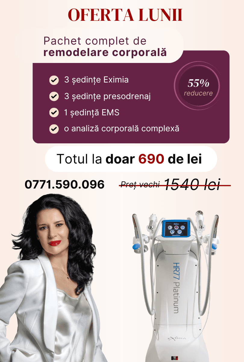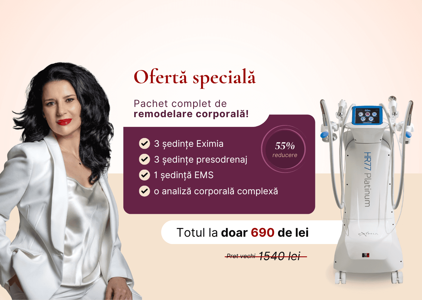 Eximia nu este doar un tratament, ci o revoluție în remodelarea corporală. Este răspunsul pentru acele zone care nu răspund la dietă sau sport, pentru momentele în care simți că faci totul „ca la carte”, dar corpul tău are nevoie de ceva în plus.